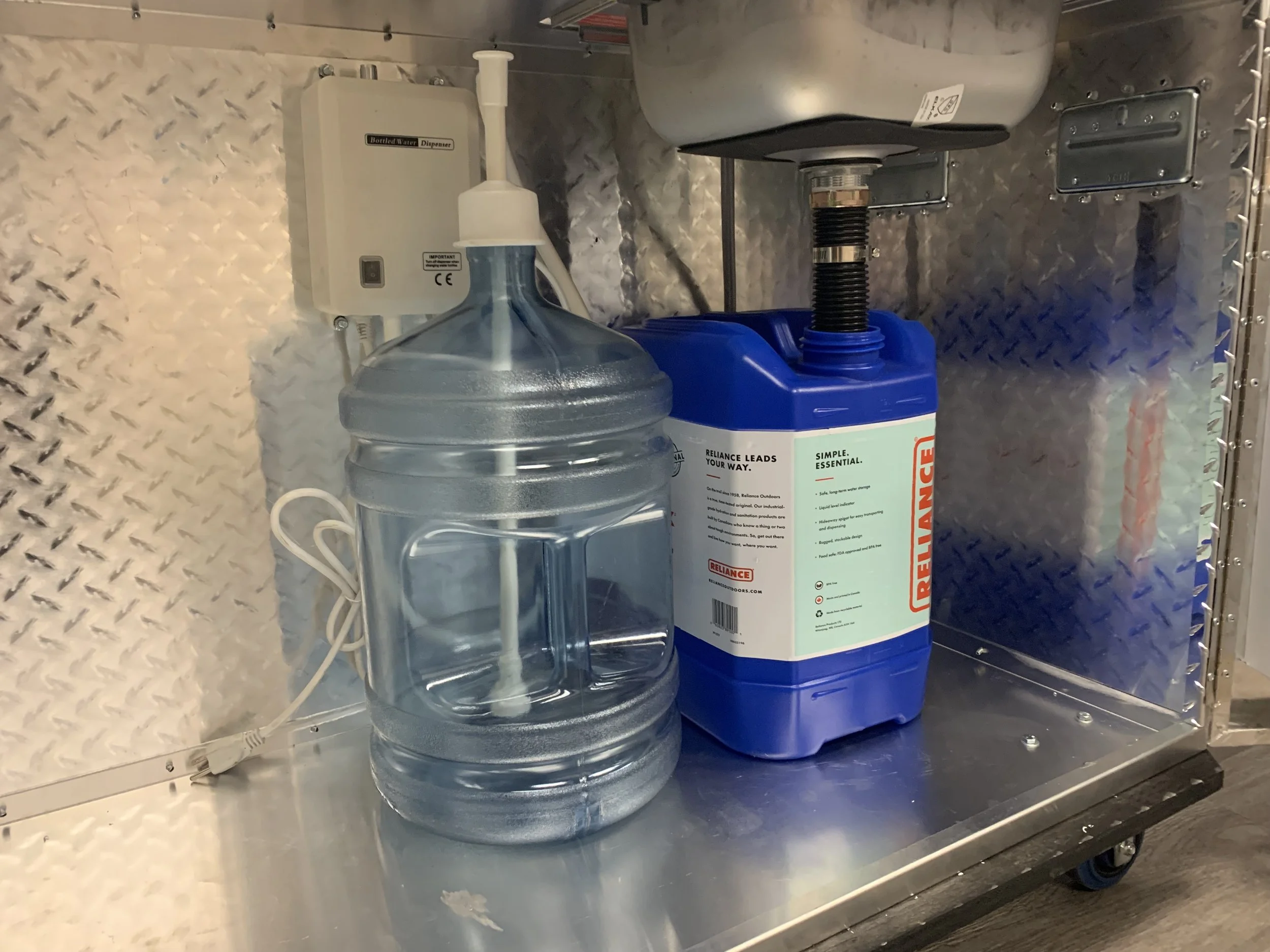 Now featuring a sink with water dispensing system! Plugs into any standard 110 v outlet includes includes a waste water tank. Mobile, heavy duty and weather resistant station for all indoor and outdoor applications!